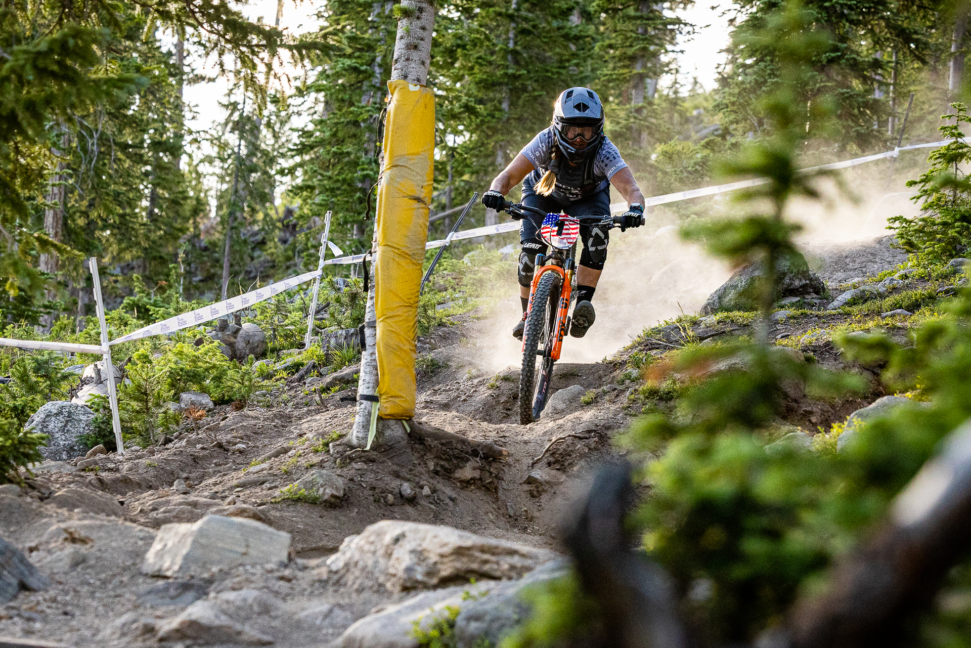 The Pro DH stage had a super-early start of 7.30 am. After a solid warm-up, Amy dropped into the chunky trail straight off the gondola. Stage 1 and 2 were filled with exposed rocks, berms, and some sections that could cause serious mechanicals. Amy’s goal was to stay smooth and keep the bike safe.