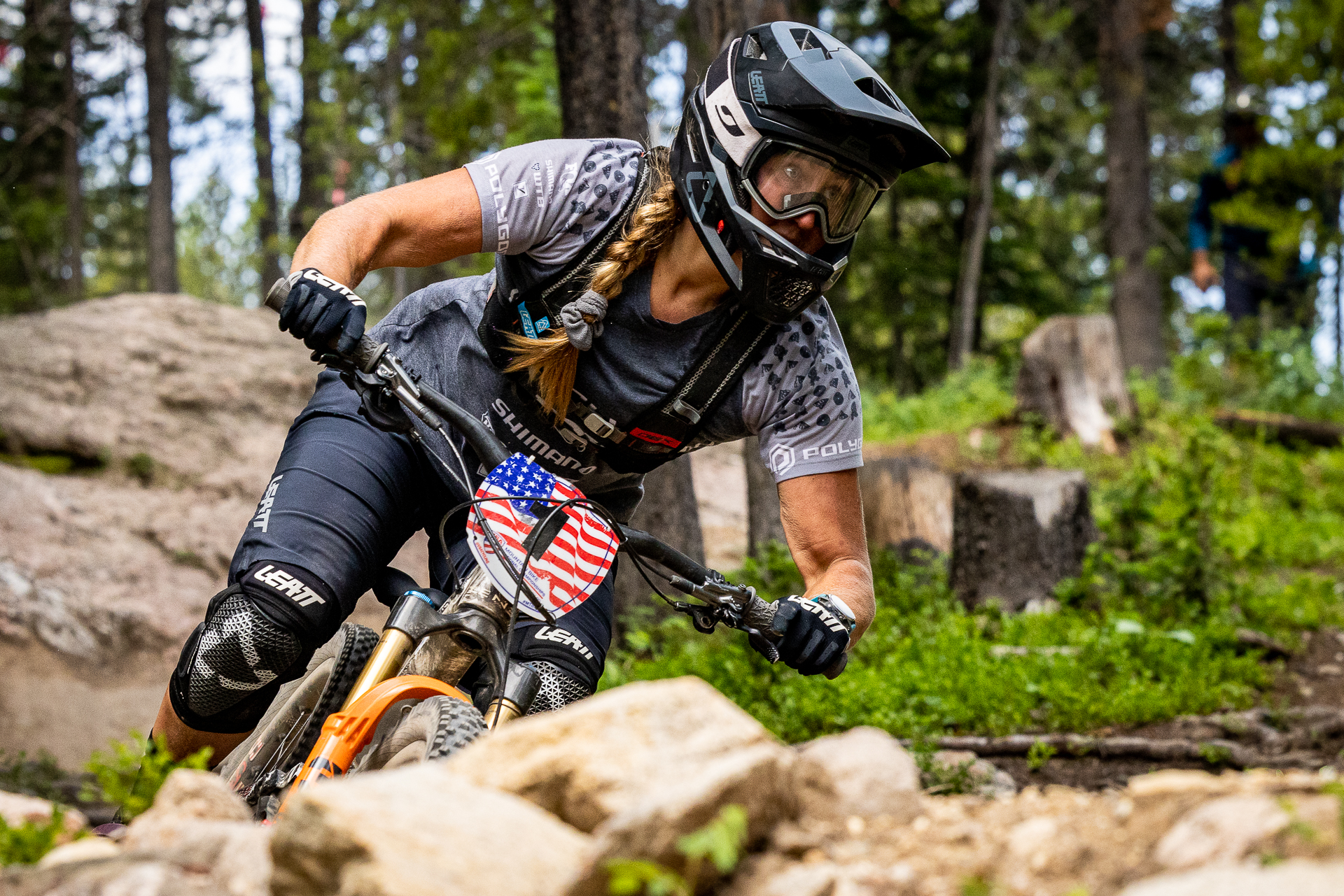 Going into stage 4, Amy confirmed that she had a 16-second lead. This stage was a physical backcountry stage with lots of sharp rocks and narrow trails. Knowing that she had an advantage, Amy continued to push where she knew it was safe to do. The last stage was a short one, less than 2 minutes, but very chunky towards the end. With no live timing available, Amy went into the stage assuming that she still had at least a bit of a lead after a solid stage 4 but knew she needed to keep it pinned to guarantee the win.