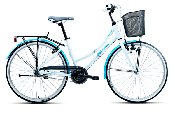 The Lite i3 is a 26" wheeled city bike that features a light weight 6061 alloy frame and steel fork with an upright riding position and step-through design for confident handling and easy mounts and dismounts. Low maintenance Shimano 3 speed internal hub, full fenders and pant guard, rear cargo rack and front basket make commuting and shopping a breeze.