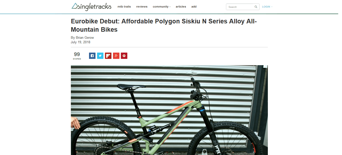“Paired with the rugged build of the new bikes, these sweet rippers are shaped by all the right curves of modern “big bike” geo. Headtube angles across the size run are 65.5°, with a climb-comforting effective-seat-tube angle of 75°. Chainstays are 435mm for 27.5″ wheels and 439.4mm on 29″ models. The reach sits right around the industry median for trail bikes at 456.6mm for a size large. None of these measurements are on the extreme ends of the geometry spectrum, which should make them feel well balanced and stable in most trail conditions. With quality builds and carefully-considered geometry, the Siskiu N Series bikes from Polygon look like a fantastic option for riders who have a long-travel void to fill. If buyers are comfortable throwing a little extra weight around, the N Series is a sweet bike at a sweeter price.”