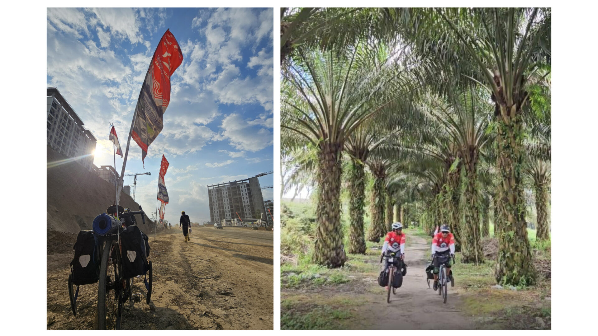 IBU KOTA NUSANTARA, AGUSTUS – Perkebunan kelapa sawit dan jalanan yang naik-turun menjadi pemandangan lazim bagi Wirawan Dwi (42) dan Sugeng Santoso (64) selama mewujudkan misinya gowes ke Ibu Kota Nusantara (IKN) untuk merayakan HUT Republik Indonesia yang ke-79 kemarin. Dua pesepeda tangguh asal Sidoarjo yang menempuh 1945 kilometer untuk merayakan kemerdekaan Indonesia.