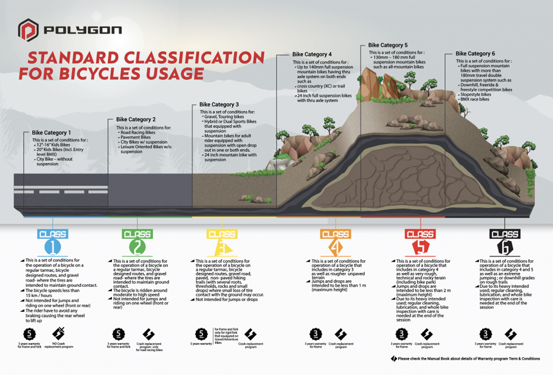 Sepeda Polygon terbagi dalam beberapa klasifikasi sesuai dengan medan dan tipe sepeda.